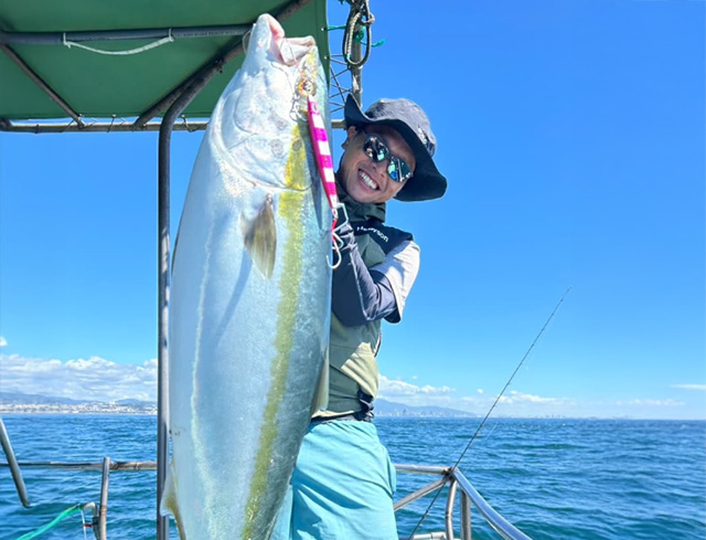 魚英の定番、ジギングで青物を狙うプランです。シャクって巻く、シャクって巻くのスポーツフィッシング!奥が深いですが、ポイントにハマれば入れ食い必須!強烈なヒットシーンは一度味わうとやめられないです!