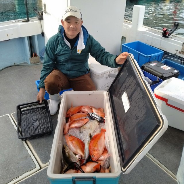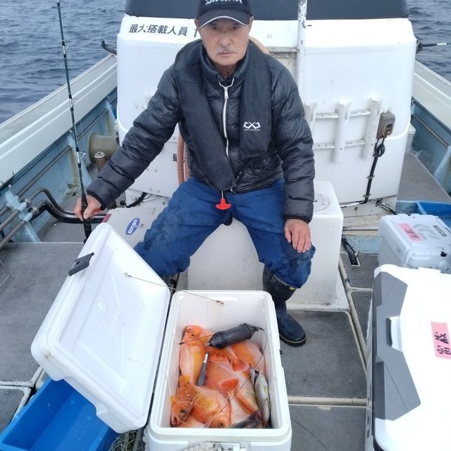 25~40cm ヒラマサ 3.00~4.00kg チカメキントキ 0.50~1.00kg メダイ 6.00~9.00kg タカバ 最大3.00kg アカイサキ 25~45cm 天びん五目釣り。皆さん楽しく釣れました(笑)