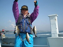 - この釣りでは1人平均、仕掛けを2~3個使います。オモリは60号を使用します。※乗合3名様以上より出船しています。乗合人数が3名に満たない場合は出船することが出来ません。※女性・子供(小学生まで):11,000円/人となります。