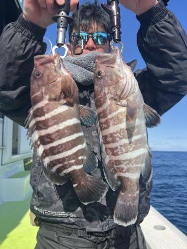 0.50~1.80kg 1~3匹 ヒラメ 0.50~1.50kg 0~2匹 ★テンヤマダイ船 真鯛1.8kg、1.2kg、1.1kg、1.0kgなど良型多数含み良い人3匹でした!! 他に、マハタ、ハナダイ、カサゴ、ウスメバルなど! ★ヒラメ船 ヒラメ1.5kgを最大に良い人2匹でした! 他に、カサゴ、メバル、ソイ、マハタ、マトウダイ、チカメキントキなど!