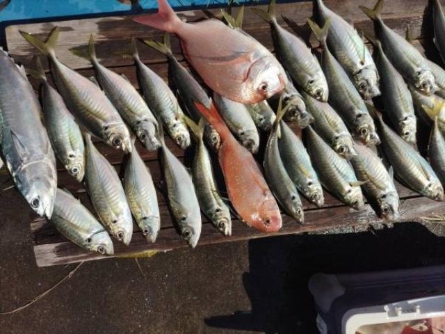 現在はマダイ、アジ、アマダイ、夜のタチウオなどが狙い目です。