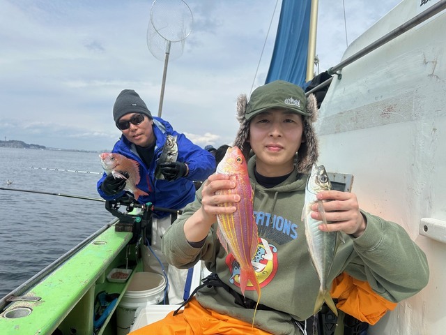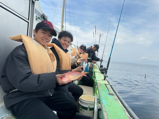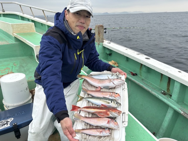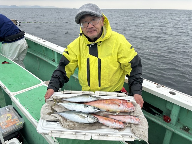 0.50~0.80kg 0~1匹 アマダイ 25~28cm 0~1匹 アジ 30~38cm 0~6匹 ウィリーアマダイ五目ハナダイ0.5~0.8㎏0~1枚アマダイ(シロアマダイ混じり)25~28㎝0~1枚イトヨリ25~33㎝0~1枚アジ30~38㎝0~6匹サバ30~38㎝2~6匹ワニゴチEtc ハナダイアマダイシロアマダイ始めイトヨリワニゴチ良型アジサバと皆さんお土産はバッチリ楽しんでもらえて良かったです! PS明日は定休日で休船します。