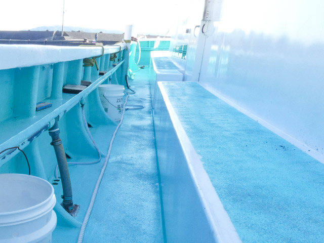 三密を防ぎ・健康状態の確認・出船前の検温、アルコール消毒、消毒の徹底・マスクの着用を行っています。下船後は港に水道がありますので、道具等を水で流す際に手洗いも行っていただけます。