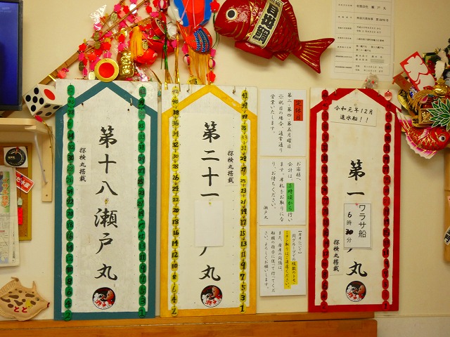 瀬戸丸は、神奈川県三浦市松輪江奈漁港から出船している老舗の釣り船です。古くから、熱烈な沖釣りファンからも一目置かれるほどの釣り船。元々、松輪江奈港は関東でも大人気の遊漁船基地で連日、広大な駐車場に100台にもなる車が並び、釣り人で賑わう港です。そんな港に古くから操業している瀬戸丸は、実績も実力も定評があります。待合所では、一息いれながらその日の釣果や反省など、お客様と瀬戸丸のスタッフが一緒になって盛り上がることも瀬戸丸ならではです。