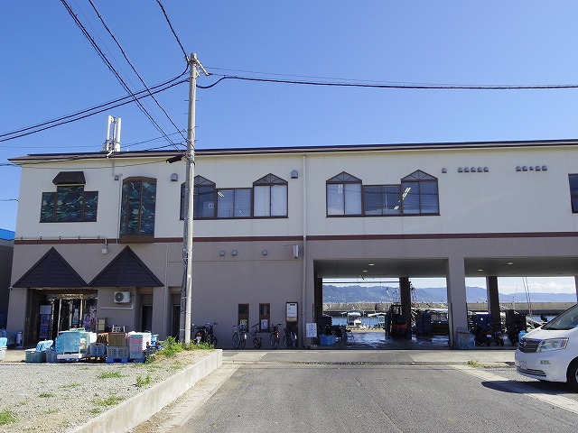明石浦漁協の建物が目印