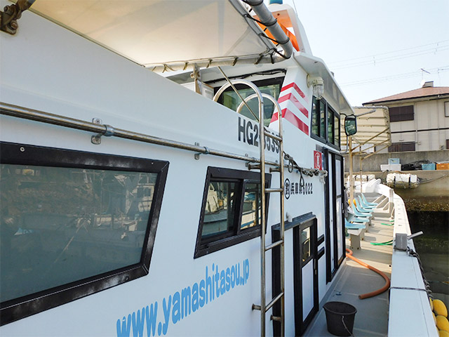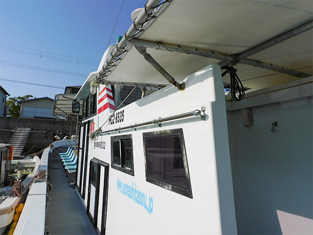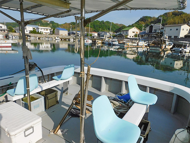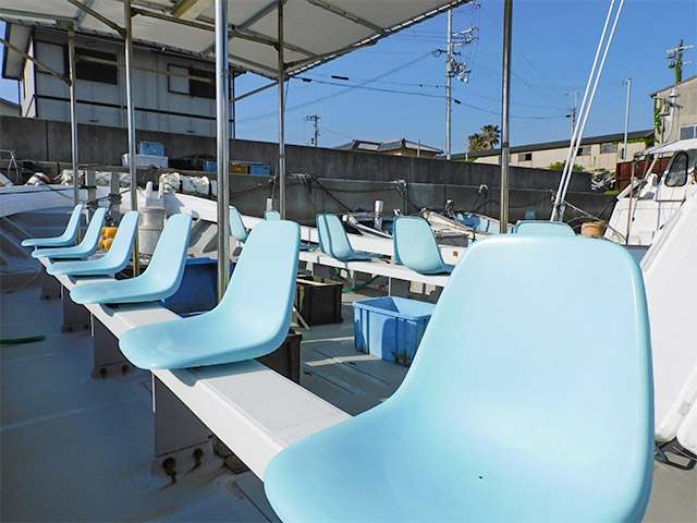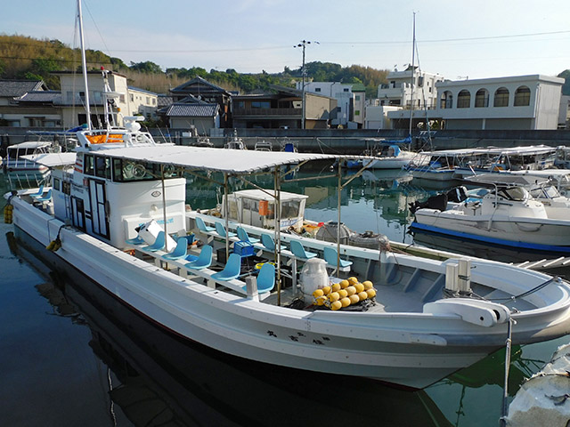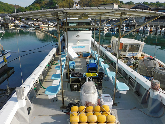 山下荘は江井崎沖を中心に狙います。江井は明石と鳴門との中間地点に位置しており漁場豊なポイントが多数あります。また風光明媚な周辺の風景は、釣り人の心を和ませ、忙しい日々を忘れさせてくれます。船は全長約20mありますが、釣り人は12人までに制限していますので、とても広い空間を確保しながら釣りが楽しめるのも魅力です。釣りだけでなく海水浴や豪華海鮮料理も楽しめ、団体様やご家族旅行にも最適です。