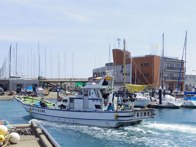 葉山あぶずり港の入口には数件の船宿が立ち並んでいて、向かって一番左にあるのが『長三朗丸』の宿になります。経験豊富な船長が季節ごとに海の状況を判断し、その時々の最適な釣りものをご提供しています。季節に応じたイカ釣り、夏から秋にかけては、カツオ、マグロなど、年間を通して多彩な魚種に対応しています。出船場所は葉山あぶずり港と逗子駅(JR)から2kmほどの距離なので、アクセスも非常に便利なところからの出船となります。