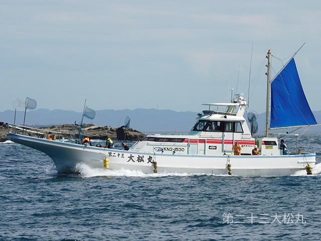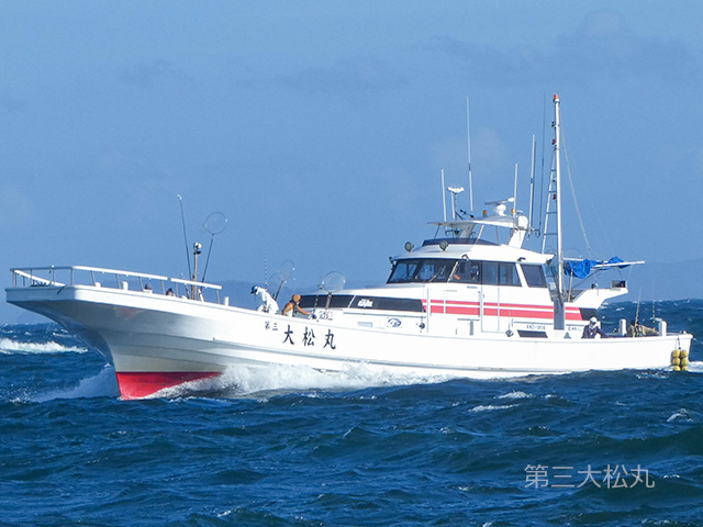 大松丸は三浦半島の先端、松輪江奈漁港から出船します。全長が24m、25mある国内最大級の大きな船2隻のほか、合計4隻で松輪沖の四季の釣り物をご案内します。どれも快適な設備を備えた船なので船に乗るのが初めての方でも快適に船上でお過ごしいただけます。船長たちも皆、明るくサポートも熱心と評判です。初心者やご家族連れも大歓迎の釣り船なので、ぜひお気軽にご利用ください。