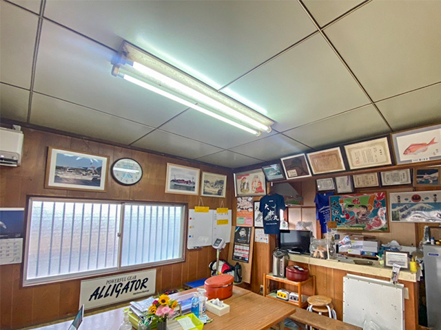 オキアミをご購入される場合、まず大松丸受付けにて先にお支払いをいただきます。その際お渡しする券を港にある漁協組合事務所にお渡しください。付けエサなどは漁業組合事務所で直接ご購入いただけます。