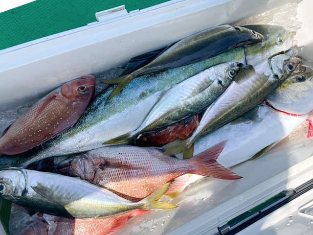 船1隻を貸し切って、朝から出船してオキアミでマダイやアジ、ハマチ、メジロなどを狙うプランです。五目釣りは旬の魚が色々釣れて楽しめます。