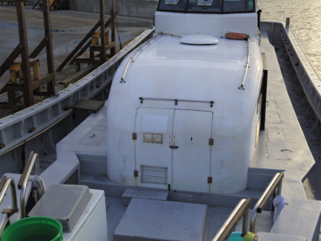 海上は陸地より洋服1枚分寒いと思ってください。風を通さないカッパやウインドブレーカーなどがよいでしょう。船のデッキ上は足元が濡れますので、長靴がオススメです。