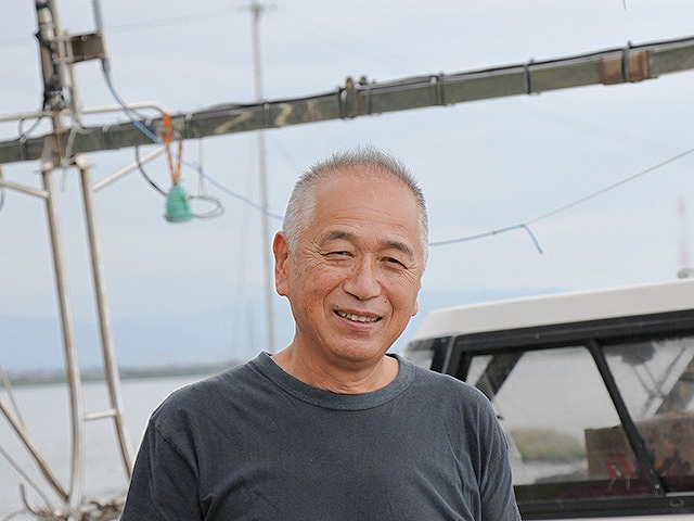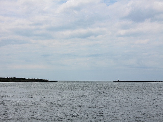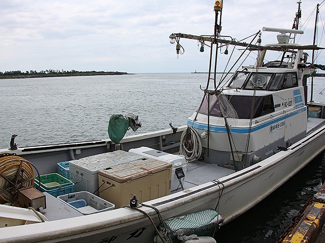 九頭竜川の河口、船が並んでいるエリアの一番海寄りです。
