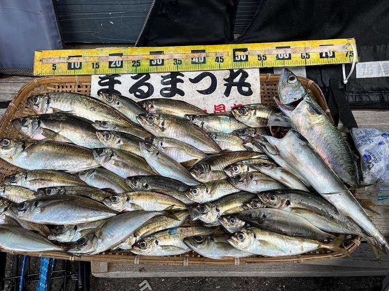 まるまつ丸は、笑顔が素敵な船長と女将さんが営業するアットホームな雰囲気の船です。釣り物は、一年を通じて「ビシアジ釣り」、初夏には夜釣りでメバルを狙います。今までインターネット上にはほとんど情報を公開しておらず、知る人ぞ知る船宿として釣り人から愛され続けています。飛松船長は、現役漁師でもあり釣りの面でも周りの船長からも一目を置かれている頼りがいのある方。分からないことがあれば、何でも聞いてください。船は最大定員38名を誇る大型船です。貸切で出船する平日は、半日釣りで5人から貸切れますので、優雅に少人数で貸切って釣りをするご利用方法もオススメです☆