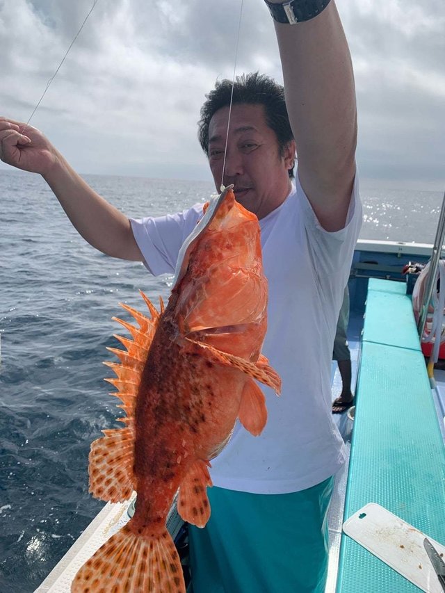 最大4.20kg 竿頭4匹 ヒラメ 最大3.50kg 竿頭1匹 カサゴ イナダ 今日も凪模様なので一番遠いポイントに、朝一からマハタ.ヒラメの型有り好調に上がりました。 マハタはほとんど良型!