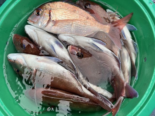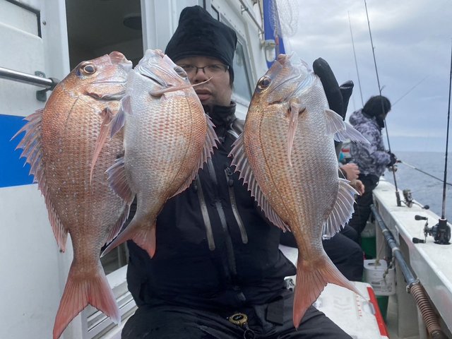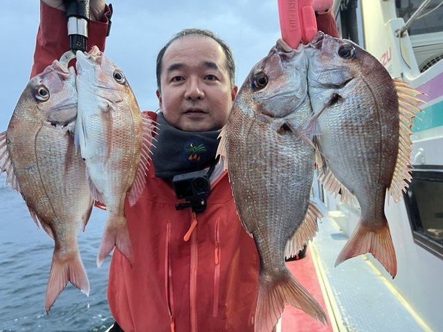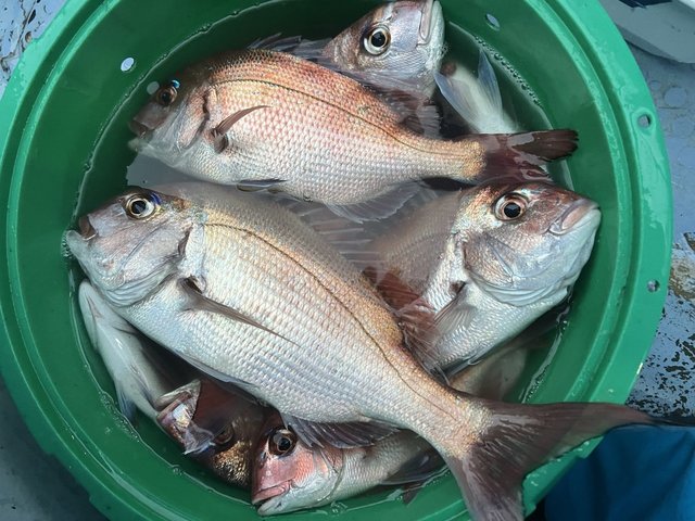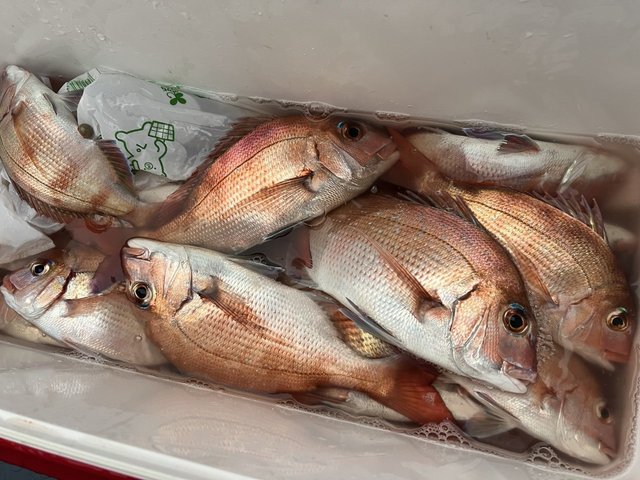 0.30~1.50kg 0~9匹 ★★★活きエビでの一つテンヤマダイ釣り♪★★★ (活き海老エサが準備できない場合は冷凍海老での釣行になります。) エサは、こちらで準備しております。 エサの追加料金は頂いておりません。 <マダイ船> 一つテンヤでのマダイ釣りです。潮が濁ってしまった為か真鯛の活性今一つ。次回に期待しましょう。 外道:ハナダイ、カサゴ、メバル、ハタ。 ***キャビン内、店内はマスクの持参着用をご協力お願い致します*** <今後の予定>***集合時間まえにはお越しください。 午前船:4時30分船宿集合…マダイ船。 午後船:10時30分船宿集合…マダイ船。 定休日:第2火曜日(1/13) (土、日、祝日は、貸竿のお客様、貸竿の必要なグループ様は5分前集合でお願い致します。) (*状況により予定が変わることもございます。前日に確認のお電話をお願い致します。) <ご予約・お問い合わせはこちらへ> 090-2155-0500(午前9:00~午後8:00まで) キャンセルにより他のお客様へご迷惑をおかけしてしまう事もありますので、キャンセルの無いようご予約をお願い致します。 <乗船名簿について> ①お名前(フルネーム)、②住所、③緊急連絡先の電話番号、④年齢、⑤性別 ①~⑤まで記入し可能であれば、持参お願い致します。