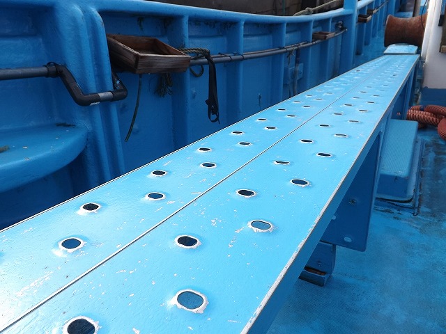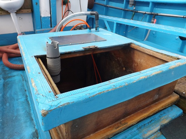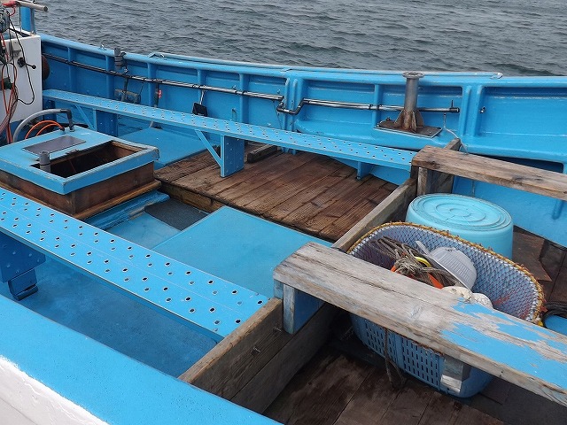 「大栄丸」は、トン数5t、全長12m、定員22人、トイレ・イケス付き