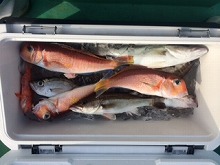 まなぶ丸は片瀬漁港から出船しています。徒歩3分前後と、とびきりアクセスが良く、釣り人からとっても人気が高い有名港です。まなぶ丸は深場の釣り物を得意とし、秋~冬はアマダイ、それ以外の時期は根魚五目で超高級魚のアラやオニカサゴ、カンコ、ムシガレイ等を狙います。アマダイ釣りでアラが釣れたり、ホウボウが釣れたりと嬉しい外道も楽しみの一つ。深場とは言え、近いポイントは20分前後で到着するという立地の良さも自慢です。根魚釣りはベテラン域の釣り人が楽しむには持ってこいの、奥の深い釣り物です。腕に自信の有る方にオススメですヨ!!