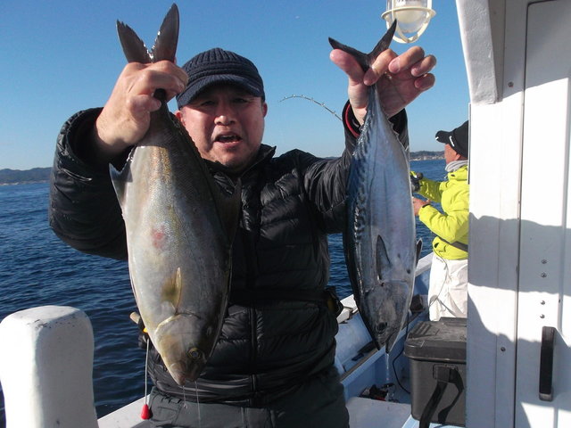 今日は急遽泳がせ出船となる。 お客様は、銀平と冷凍イワシご持参です、 ポイントの潮は流れが良いが、何も喰いません。 中盤の満潮時、バタバタと竿が曲がる。 ジアイでしょうか?見ていて楽しいよね! 特別大型は無いも、アタリがあると楽しいね! 外道ではカサゴ、アヤメカサゴと少々寂しい。 スマガツオのバラシは残念でした。