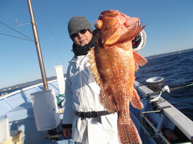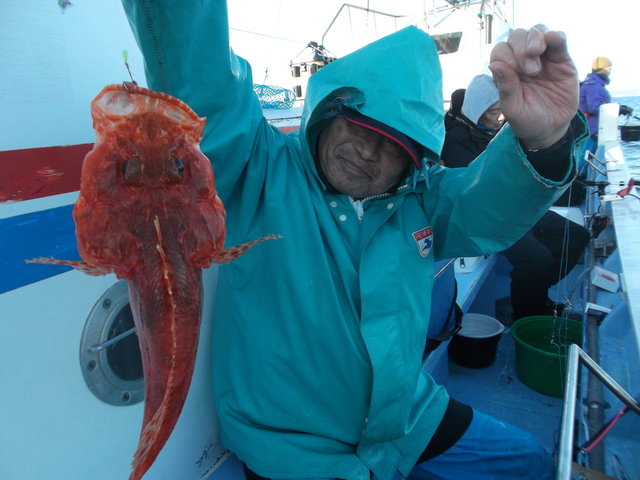 0.80~4.00kg 0~2匹 今日も冷凍イワシの泳がない釣り! 銀平をご持参の方やジギングのベテランさんも参戦。 朝の内に小雨も交じるが、海況の問題は無い。 ポイントの潮はゆっくり流れ、根廻りもOKだね! 朝一からマハタやアカヤガラ、カサゴにキントキです。 一日中流れは緩慢、流しやすいし釣り易い。 今日はジギングのベテランさん大活躍(昨日は不発)です。 潮具合か、はたまた腕か?(スロージギングです) 皆さん適度に竿が曲がり、楽しめたかな?