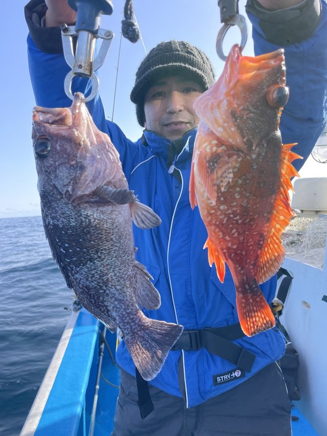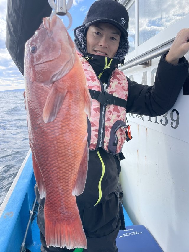 0.30~0.90kg 0~7匹 マハタ 28~38cm 0~1匹 カサゴ 25~30cm 0~3匹 メバル 28~32cm 0~2匹 一つテンヤマダイで出船しました。水温17.4℃ マダイ最大で0.9kgその他0.8kg、0.6kgトップ7尾でした。マダイ0.3~0.9kg0~7尾。ゲストでマハタ、カサゴ、メバル、カンダイ、ハナダイ、サバ、ショウサイフグでした。本日、乗船の皆様ありがとうございました。 【お知らせ】 明日12月10日(水)はアマラバ、タイラバで出船致します。お早いご予約お待ちしております。 年末年始のお知らせ! 年末は31日まで年始は3日から出船いたします!お早いご予約お待ちしております。 11月1日からテンヤマダイ船集合5時に変更しました! ※誠に勝手ながら満船時の当日キャンセルは乗船料の100%頂きます。ご了承下さい! 一つテンヤマダイ 12,000円(エサ、氷付き) 集合4時30分になります。 アマダイ、アマラバ 12,000円(エサ、氷付き) 集合4時30分になります。 エギダコ 13,000円(氷付き) 集合4時になります。 ご予約 電話090-1842-0165 お気軽にお電話下さいね!!