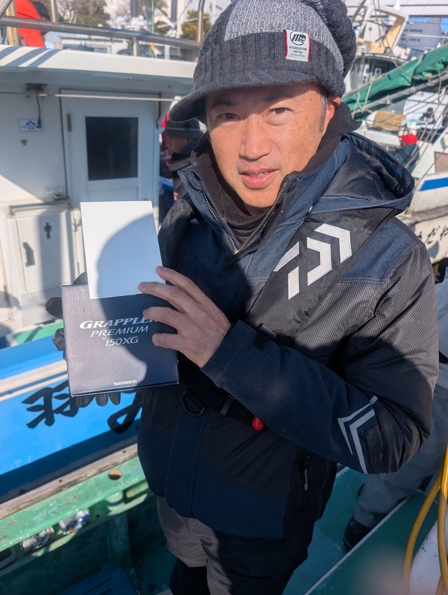 2/1(日)江戸前釣り大会アジ 今回はぽかぽかベタ凪天候に恵まれましたが 船内成績1位で45.5cm(2尾の合計尾叉長) 大会の総合にはかすりもせずでした。 お楽しみ抽選会は4名当選 理事長賞でグラップラープレミアム150XG貰えました。 参加者の皆様、協賛メーカーの各社様ありがとうございました。