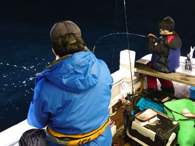 海上は陸地より洋服1枚分寒いと思ってください。夜釣りはなおさらです。風を通さないカッパやウインドブレカーなどがよいでしょう。船のデッキ上は足元が濡れますので、長靴がオススメです。