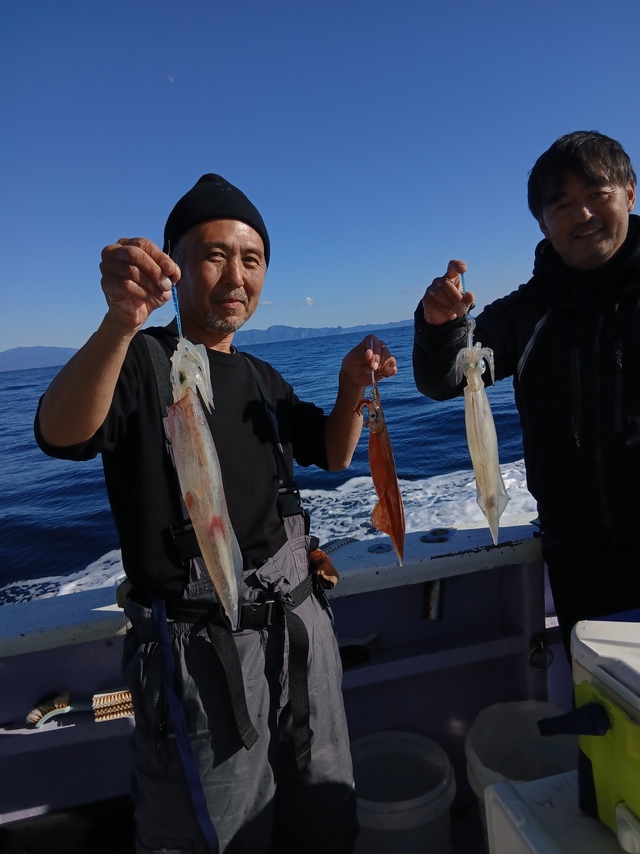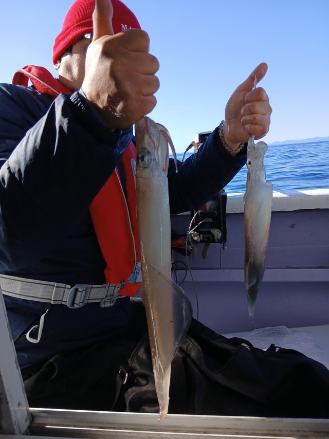 25~46cm 15~43匹 中盤までは良い感じで続きましたが、後半は若干の失速で一回一回。 ラスト3投入は良い場所に!! 良型が多く為って来ました。 傘袋もお持ち下さい。 正月用のヤリイカ沖干しも格別!!