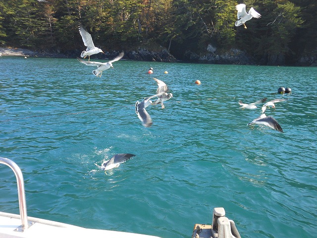 海上は陸地より洋服1枚分寒いと思ってください。風を通さないカッパやウインドブレカーなどがよいでしょう。船のデッキ上は足元が濡れますので、長靴がオススメです。