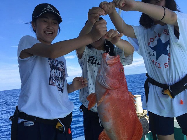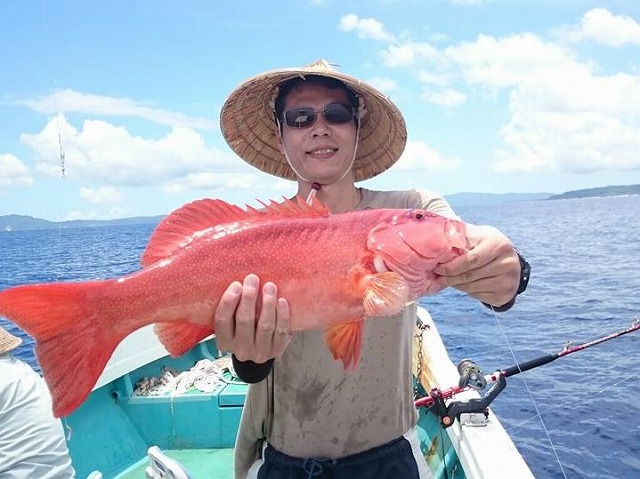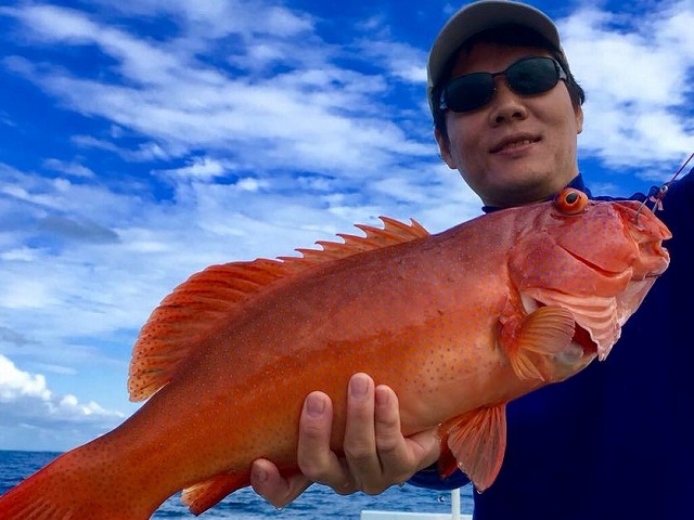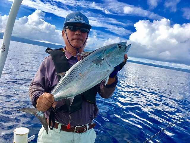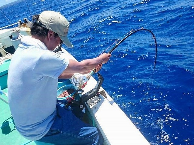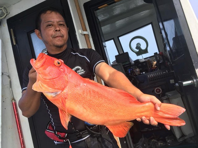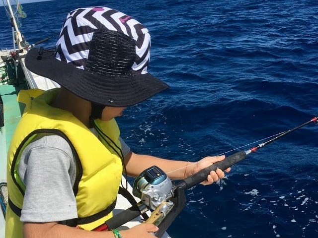 名護市屋我地島にある屋我地漁港から出船しております。経験豊富な船長が親切丁寧にサポートしてくれますので、ご家族連れや釣り初心者の方でも観光の途中で気軽に立ち寄り、本格的な沖釣りを体験できます。沖縄の県魚グルクンが面白いように釣れ、時には根魚のアカジンという大物もヒットしてきます。船には、ライフジャケットを常備しており、個室水洗トイレ、釣り竿、仕掛け、エサ等も完備していますので、手ぶらで本格的な沖釣りを楽しむことが出来ます。