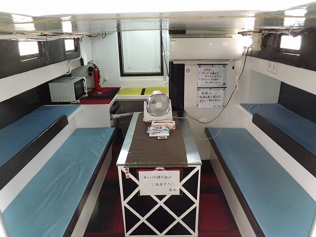 ★土足厳禁の清潔感あるキャビンでは、横になっておくつろぎいただけます。