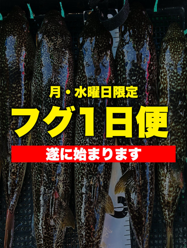58cm 合計1匹 【速報】12月11日、先ほど驚異的な釣果が出ました。 トラフグ58cm・3.9kg。一つテンヤ乗り合いで奇跡が起きました。たまに釣れる明石産の天然トラフグですが、これはとんでもない価値があります。 真鯛は船中36匹。トップ9匹、次点7匹、最大は73cm。大きいサイズが多く上がりました。 それにしても、このトラフグは規格外の大きさでした。 釣り上げた方、本当におめでとうございます。 今週のスケジュール 12/12 フグ便:確定 フグタイラバ:確定 一つテンヤ:確定 タイラバ:募集中 太刀魚:募集中 12/13 太刀魚:確定(残り1名) フグタイラバ:確定 フグ便:確定 一つテンヤ:確定 12/14 一つテンヤ:確定 フグ:確定 タイラバ:確定 12/15 一つテンヤ:確定 その他便:募集中 12月の特別企画 ①65歳以上限定の特別企画 期間限定で、平日の乗船代が5,000円になります。 対象期間:12月8日(月)〜12月29日(月) 平日10名様限定。ネット予約の際、備考欄に「65歳以上」とご記入ください。 真鯛・タチウオ・フグ・青物など魚種は問いません。 ※割引券は適用外です。 ②フグ1日便(月・水限定) 朝6時;夜18時までフグを狙い続ける特別便です。 8名様以上で出船します(人数が集まらない場合は通常便となります)。 乗船代:15,000円 年パスの方:6,000円 戻り次第、スタッフが調理してお渡しします レンタルタックルあり。初心者の方も参加可能です。 年末に向けて、正月用の魚をしっかり確保しましょう。