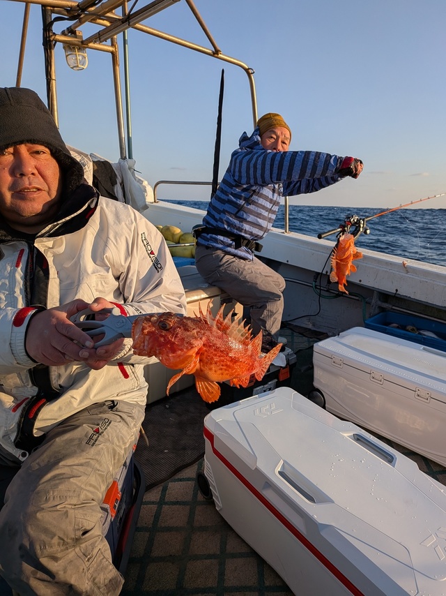30~50cm 合計40匹 レンコ 25~30cm 合計120匹 アマダイ 45~50cm 合計2匹 オニオコゼ 25~30cm 合計10匹 チカメキントキ 30~35cm 合計4匹 タカバ 25~40cm 合計15匹 アラカブ 25~40cm 合計15匹 アコウ 45cm 合計1匹 今年の初釣りでしたが色々の魚が釣れていた