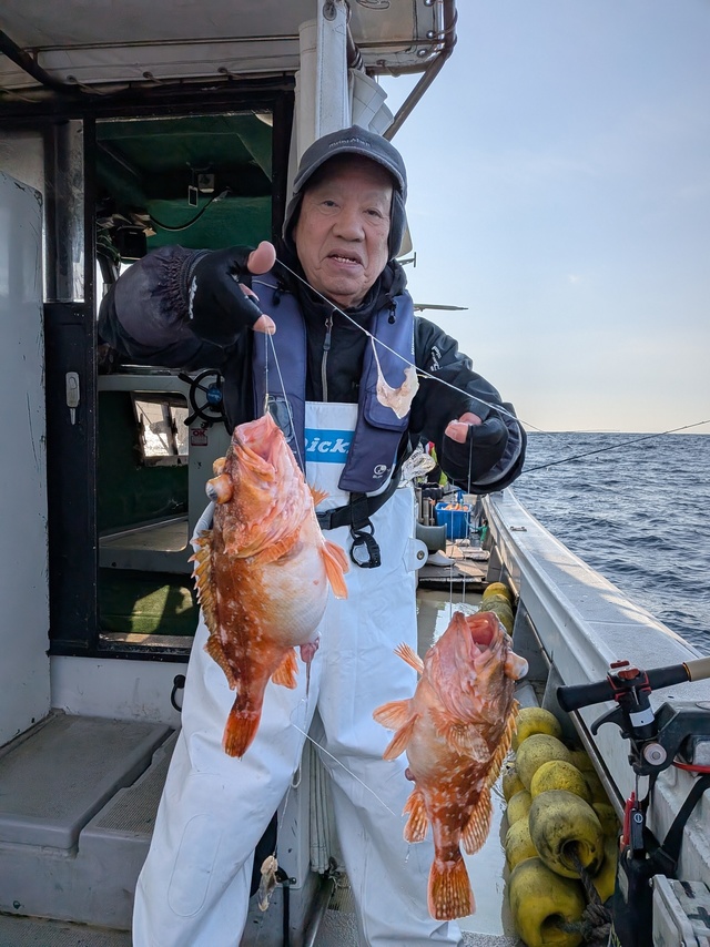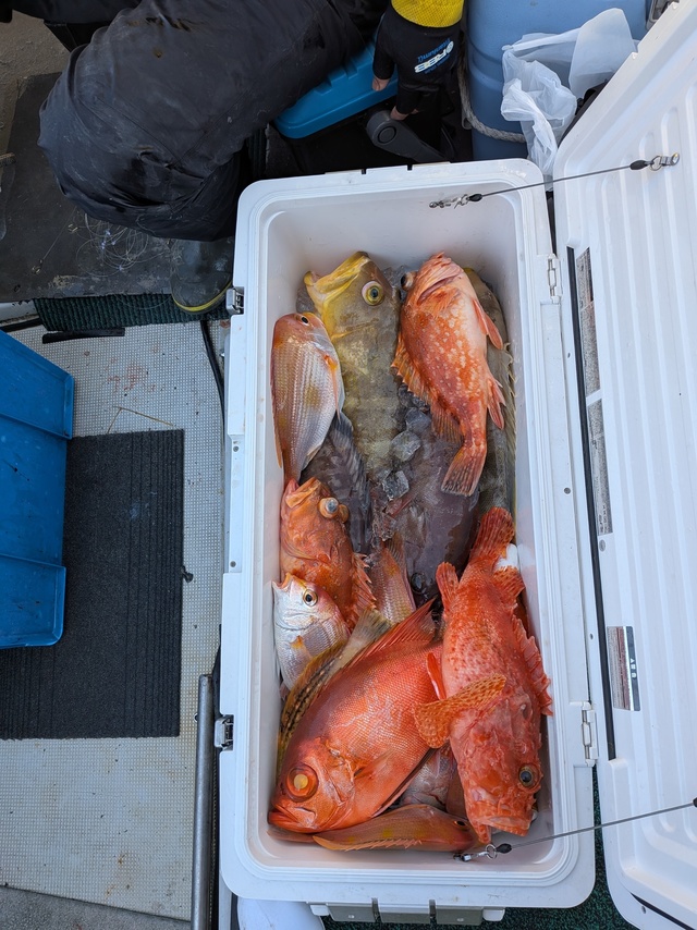 34~37cm 合計20匹 アラカブ 25~45cm 合計30匹 アオナ 25~45cm 合計10匹 タカバ 25~40cm 合計8匹 オニオコゼ 30~35cm 合計12匹 レンコ 25~30cm 合計70匹 アマダイ 45~50cm 合計4匹 チカメキントキはイカの切り身かエビなどが良かった