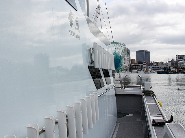 海上は陸地より洋服1枚分寒いと思ってください。風を通さないカッパやウインドブレカーなどがよいでしょう。船のデッキ上は足元が濡れますので、長靴がオススメです。