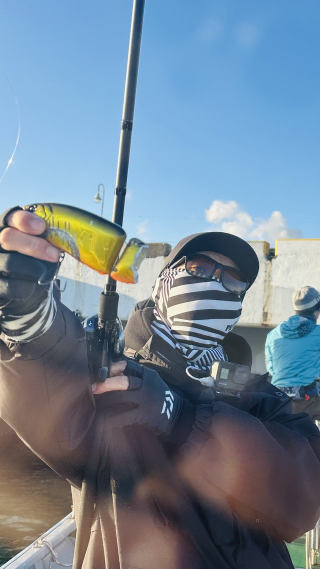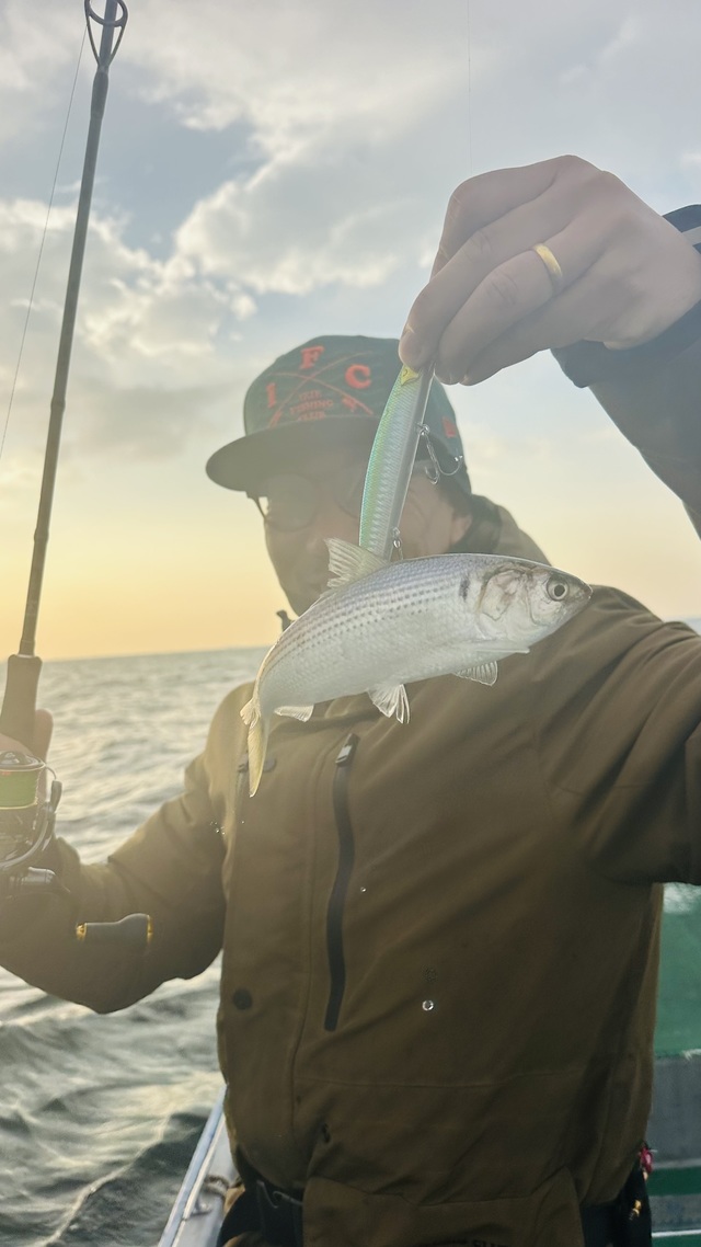午後乗合2号艇石井ちゃん。 本日はお二人さまで出船! この時期になると毎年来て頂いてるTOP狂いコンビw さてさて今年はどうなるか、まずは近場からスタート。 鳥がチラホラして雰囲気良くて、開始早々TOPにまさかの誤爆! これはチャンス!って事で、お一人がミノーにチェンジしたら秒殺HIT。 そのまま続けてもう1本、ありがとうございますw 一段落したので沖へ移動。 沖でも鳥がパラパラしてて、チェックしたらまさかのコノシロ絨毯。 とりあえずTOPからやるも南風強くて反応いまいち。 ディープベイト入れたらすぐに「来た!」お見事! 続いてGraceにも食ったけど船べりでフックアウト…惜しい。 i様は不滅のターゲットで魚触った事あったかな?w 今日は珍しくスピニング持参で、まさかのミノー投げ。 思わず写メ撮っちゃいましたw そして釣れたのは…コノシロww こっちも写メ案件でしたw 後半はGraceとディープでバラシ連発、たまにチェイス。 それでもアフター前の魚が混じってて良かった。 風が南→北→東とコロコロ変わってコノシロ押さえるのが大変でした。 ラストは風も落ち着いたので軽くキャス練。 最近マイブームのIMZでビビビッ!MAX飛距離で笑いましたw その流れで電子リールでも遊んで終了。 年明け、また魚掛けに行きましょうね! 本日もお疲れ様でした!