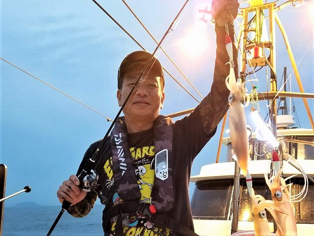 〈夜便〉最大10名様までのグループで船を貸し切って釣りをします。福岡の夏の釣りの風物詩・夜焚きイカ釣りが楽しめるプランです。ターゲットとなるヤリイカ・ケンサキイカはともに高級イカとして知られ、地元ではブランド食材としてプッシュされている注目の釣り物です!たくさん釣り上げてイカ三昧を満喫してください!