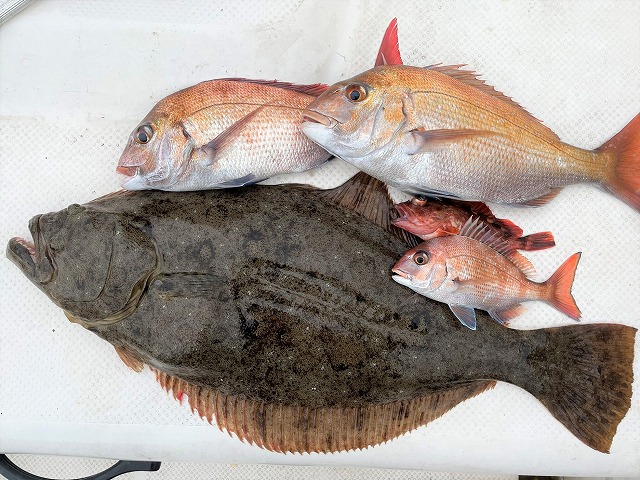 T様(愛媛在住)昨年の秋は東京からきた兄貴と2人、半日コースでアコウがどう付き仕掛けのエビで結構つれたので、今回は いつもの愛媛のメンバー4名でタイラバやってみました。 ちょっと渋かったですが真鯛、マゴチ、アコウがポツポツ釣れました。 船長もおだやかな方で楽しい1日を過ごせました。 また利用したいと思いますのでその時はよろしく お願いします。