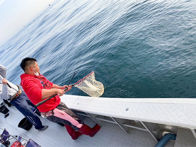 白鶴丸は、淡路島の育波漁港から出船します。全長20mを誇る巨大な船は令和3年に就航した新造船です。大きな船であってもお客様の定員は最大12名までに設定していますので、ゆったりとした空間で釣りを楽しんでいただけます。出船場所となる育波漁港は、高速道路を降りてから約1kmとあってアクセスも良好です。播磨灘、明石海峡、淡路沖の四季折々の釣りをお楽しみください。