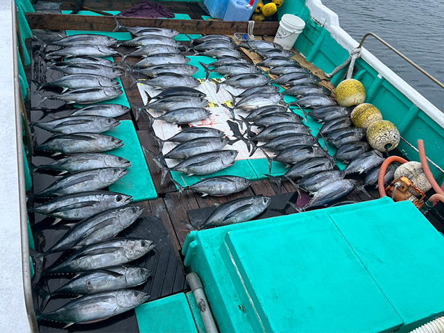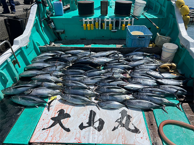 大山丸は遊漁船がひしめく志摩市の和具漁港から出船します。周りの釣り船から『志摩の軍艦』と揶揄されるフォルムの船体は、相当のインパクトがあります。迫力と大きさのあるその船体は、揺れに強く船釣りに慣れていない方も安心してご乗船していただけます。大山丸は現役漁船船ですが、今年1月に個室トイレを新調したばかりですので、