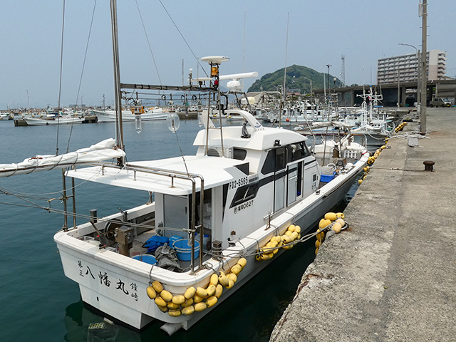 第三八幡丸は宗像市の鐘崎漁港から出船します。船体は全長15mの長さで横幅も広いため、ゆったりとした空間で釣りを楽しんでいただけます。またエアコン付きのキャビン、電子レンジやポットなどもあり船上で快適に過ごせるアイテムも充実しています。釣り物は、夜焚きイカや落とし込み、五目釣りなど玄界灘の定番の沖釣りは全て出船可能。近年人気が高まっているジギングやタイラバなどのルアー釣りも対応しています。