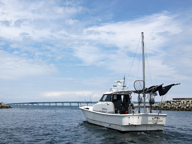 JACKは、泉南の田尻港から出船します。スタイリッシュな大きめの船で乗船いただける釣り人の最大人数は12名。船には、30本以上あるロッドホルダー、ポンプ付きイケス、後方の人はいつでも見ることができる魚探モニター、ソナー、真水の水道といったワンランク上の設備が充実しています。また女性やご家族連れの方にも安心して来てもらえるようにと、トイレのキレイさには拘っているとのこと。船の中心部奥にあるキャビンは更衣室として利用できるようです。釣りは、大阪湾や淡路島、神戸沖、和歌山方面の旬の釣りをご案内しています。出船場所となる田尻漁港では、毎週日曜日の7時から漁港内で「日曜朝市」が行われており大変人気があります。ほかにも12月から3月の期間限定でオープンする牡蠣小屋や、カフェ・飲食店が立ち並ぶ魅力満載の港です。出船との時間が合ったときや釣りではない日にもぜひご利用ください♪