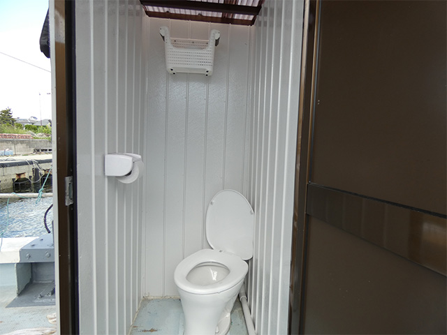 はい、付いています。個室水洗トイレです。女性の方も安心してご乗船いただけます。