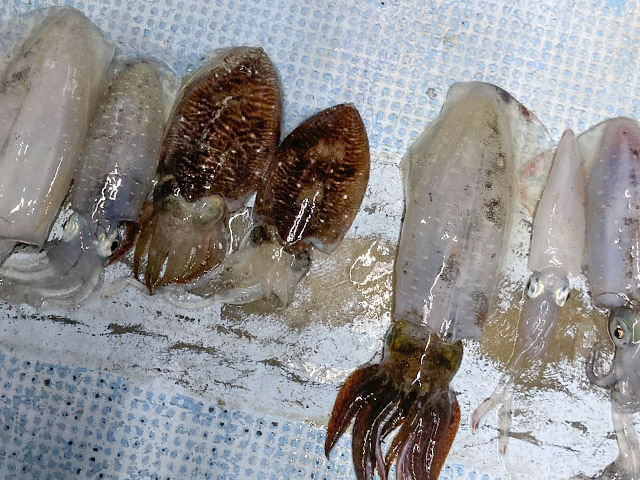 お昼からの出船プランです。胴付き仕掛けを使い、エギングでアオリイカを狙います。