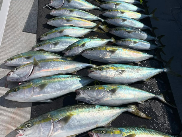 ノマセ釣りとジギングでブリやメジロを中心とした大型の青物を狙います。基本的にはノマセ釣りのため、青物釣りの釣り場へ向かう前に、エサとなるアジを釣ります。ぜひ大物を釣り上げてください!
