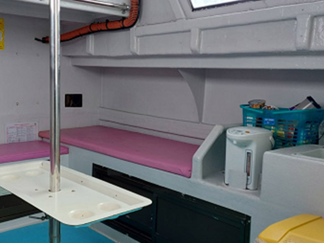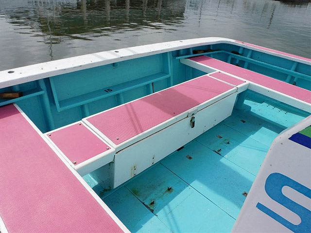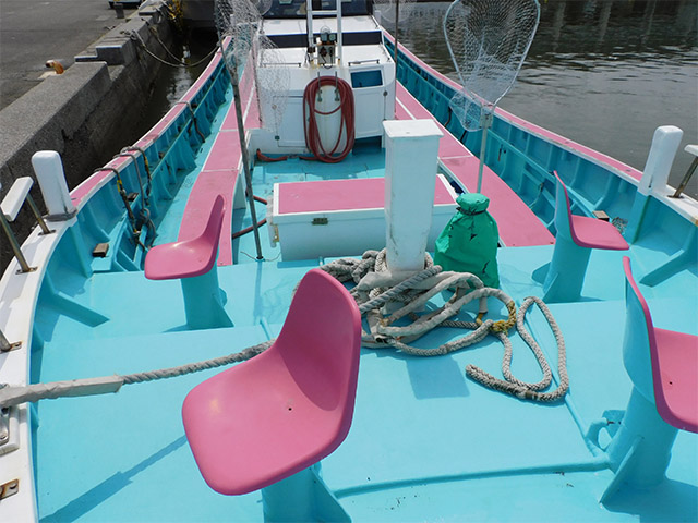 先ずは、コンテナにある座席番号札をお取り下さい。座席は先着順です。出船時間30分前までに番号札を取り乗船場所にお越し下さい。その場で乗船名簿の記入ならびに料金のお支払いをお願います。