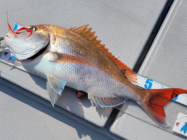 川村塾の代名詞「タイラバ」でのマダイ狙いです!釣れた魚は活け締めにしてくれるサービスも付いています!