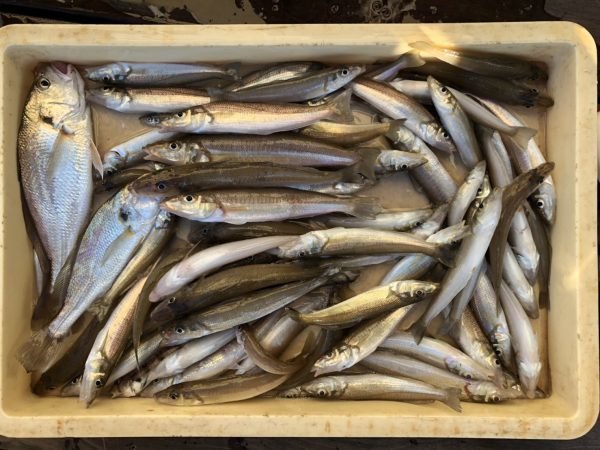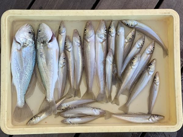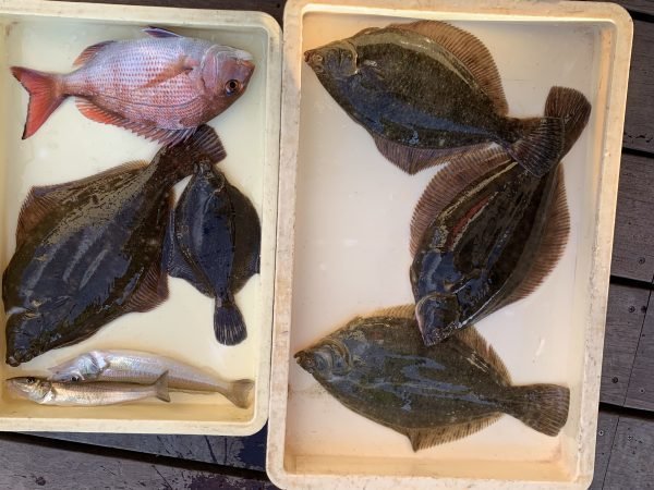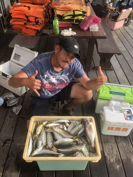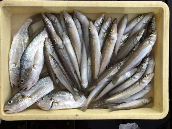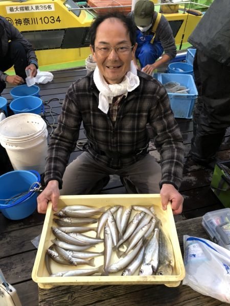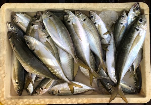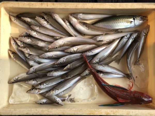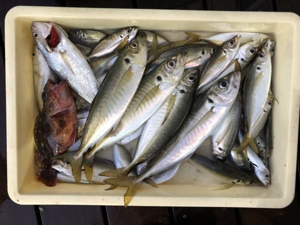 18~28cm 21~71匹 イシモチ LTアジ。 雨と寒さの中午前船は出船。今日は頑張ってくださった皆さんにご褒美アジでしたね。 朝からアタリ良く、徐々にアタリが遠くなる時間はありましたが、終日当たりました。 皆さんお土産はバッチリでした。お食事チ-ムも、食材はバッチリでした。 午後は貸し竿チームの皆さんで出船。雨もあがり海も穏やかになり助かりました。午後もスタートからアタリ良く、サービスタイムも長かったので、慣れない方も当たりがだせました。 明日は残念ながらご予約がございません。3名様以上で出船致します。ご予約お待ち致しております。お誘いあわせの上ご来店ください。 午後船、18~28cm、5~25尾。