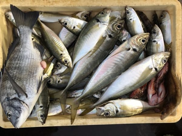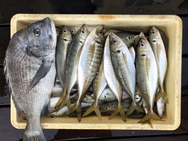 25~45cm 10~30匹 マダイ クロダイ カサゴ ショ-トアジ。 少人数での出船でした。中アジ狙いからのスタートでしたが、食い悪くお土産は取れないまま大型狙いへ。地味でしたが、極上アジを皆さんバッチリ釣ってくださいました。 雨と寒さの中有難うございました。明日も少人数ですが、出船致します。ガラガラですので、当日釣行もOKです。