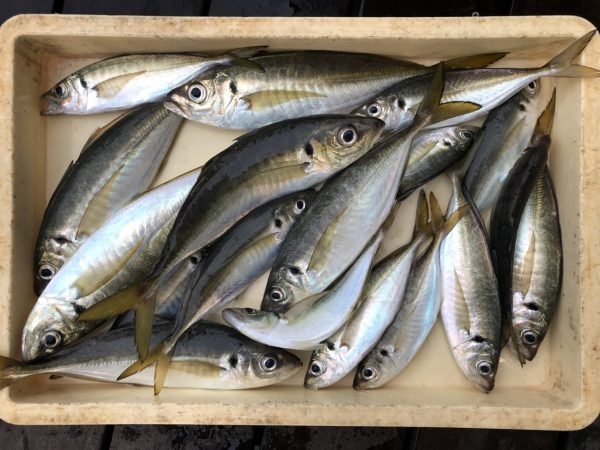ショ-トアジ(大型狙い)。 本日も出船させていただきました。今日は初心者さんが挑戦してくださいました。前半は小アジで練習。10尾ほど釣れたところで大型狙いへ。今日は簡単ではないものの手合い次第に極上アジが釣れてくれました。 明日も出船致します。棚どりが難しいので、しっかりレクチャ-をお聞きください。明日も暖かくして、防水対策万全でお出かけください。極上アジゲットしましょう。