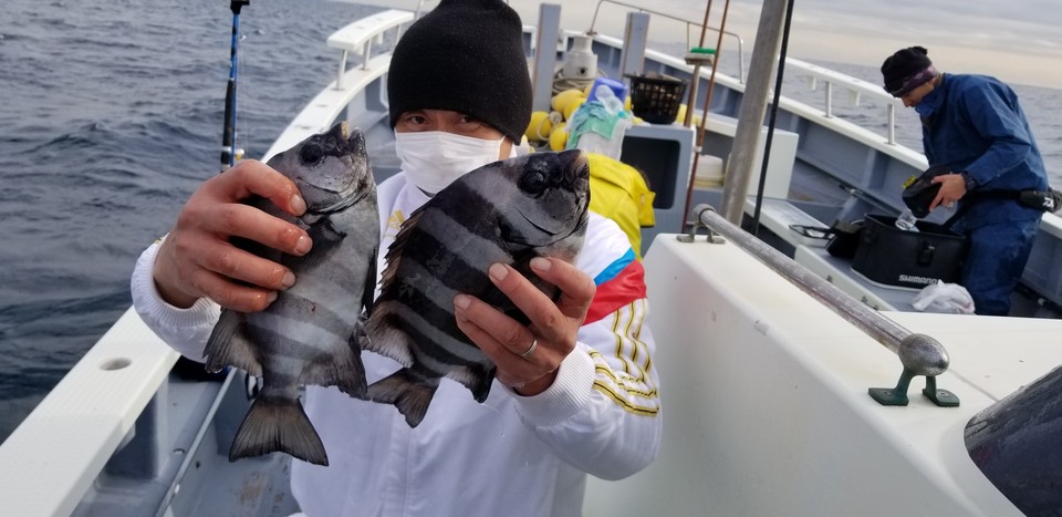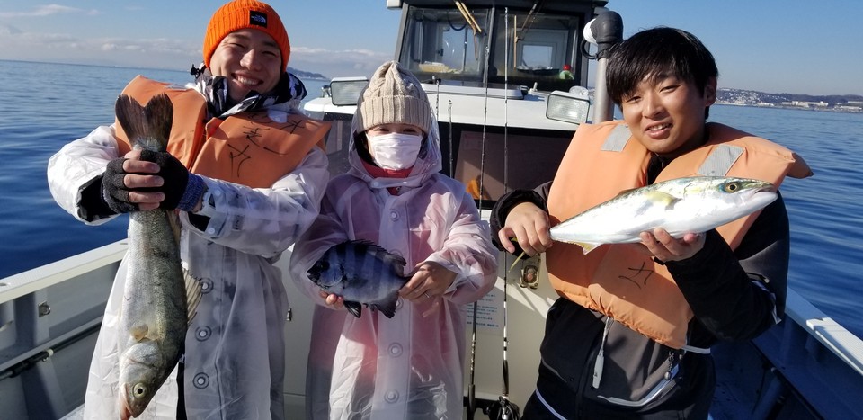 45~53cm 3~8匹 ハナダイ 22~29cm 3~4匹 ヒラソーダ イトヨリ ウマズラ 何時もご乗船有り難う御座います。 お客様2名で出船(子供さんは同乗) 11日の昨日は南西風吹き入れてきて11時頃上りました。 ハナダイイナダが良い感じで釣れ楽しんで貰えました。 後半コマセカゴ外してアマダイをと風吹いてきてしまい正味30分、、大型イトヨリ 釣果イナダ45〜53cm3〜8本・ハナダイ22〜29cm3〜4 枚他大型ヒラソーダ・大型イトヨリ・大型ウマズラ 今週末 13日は仕立出船で 14日乗合出船 空いてます 年末まで乗合、仕立予約がほぼなく グループ様勿論お一人様も是非 沢山のご予約お待ちしております。